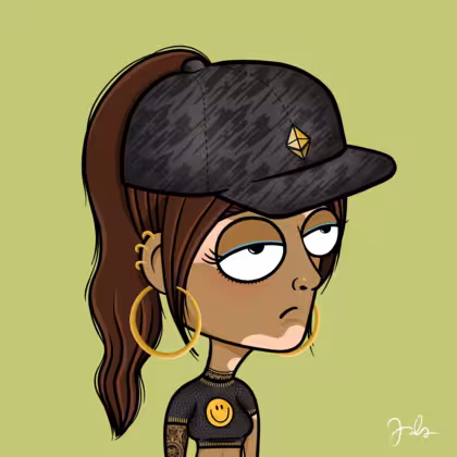 Collection Depressed Citizens Artist Juls Description ART. No team, no project, no future. Depressed Citizens is an urban & existential Art expression on Ordinals. In a parallel universe, "THEI" control us. DC unites against toxic society, encouraging critical thinking. 100% hand made collection that took Juls more than 6 months of daily work. Name Citizen#2048 Origin Unique Gender Woman Necklace No Necklace Hat Bad cap Mustache Beard No beard Glasses No Glasses Earrings Helix ring trio Hair Style High ponytail Clothes Smiley crop top Tattoo Maya tattoo Star Background Without stars