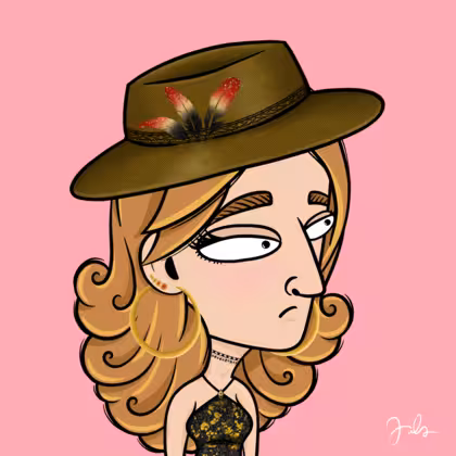 Collection Depressed Citizens Artist Juls Description ART. No team, no project, no future. Depressed Citizens is an urban & existential Art expression on Ordinals. In a parallel universe, "THEI" control us. DC unites against toxic society, encouraging critical thinking. 100% hand made collection that took Juls more than 6 months of daily work. Name Citizen#222 Origin Caucasian non hispanic Gender Woman Necklace Choker Hat Fedora hat Mustache Beard No beard Glasses No Glasses Earrings Upper lobe strass Hair Style Long wavy Clothes Golden black halterneck top Tattoo No Tattoo Star Background Without stars