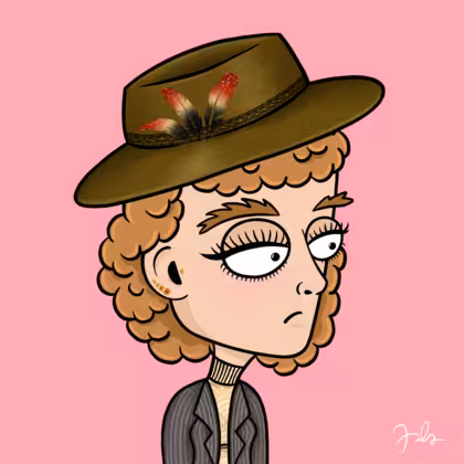 Collection Depressed Citizens Artist Juls Description ART. No team, no project, no future. Depressed Citizens is an urban & existential Art expression on Ordinals. In a parallel universe, "THEI" control us. DC unites against toxic society, encouraging critical thinking. 100% hand made collection that took Juls more than 6 months of daily work. Name Citizen#261 Origin Caucasian non hispanic Gender Woman Necklace No Necklace Hat Fedora hat Mustache Beard No beard Glasses No Glasses Earrings Tragus star earring Hair Style Curly Clothes Beige turtleneck sweater Tattoo No Tattoo Star Background Without stars